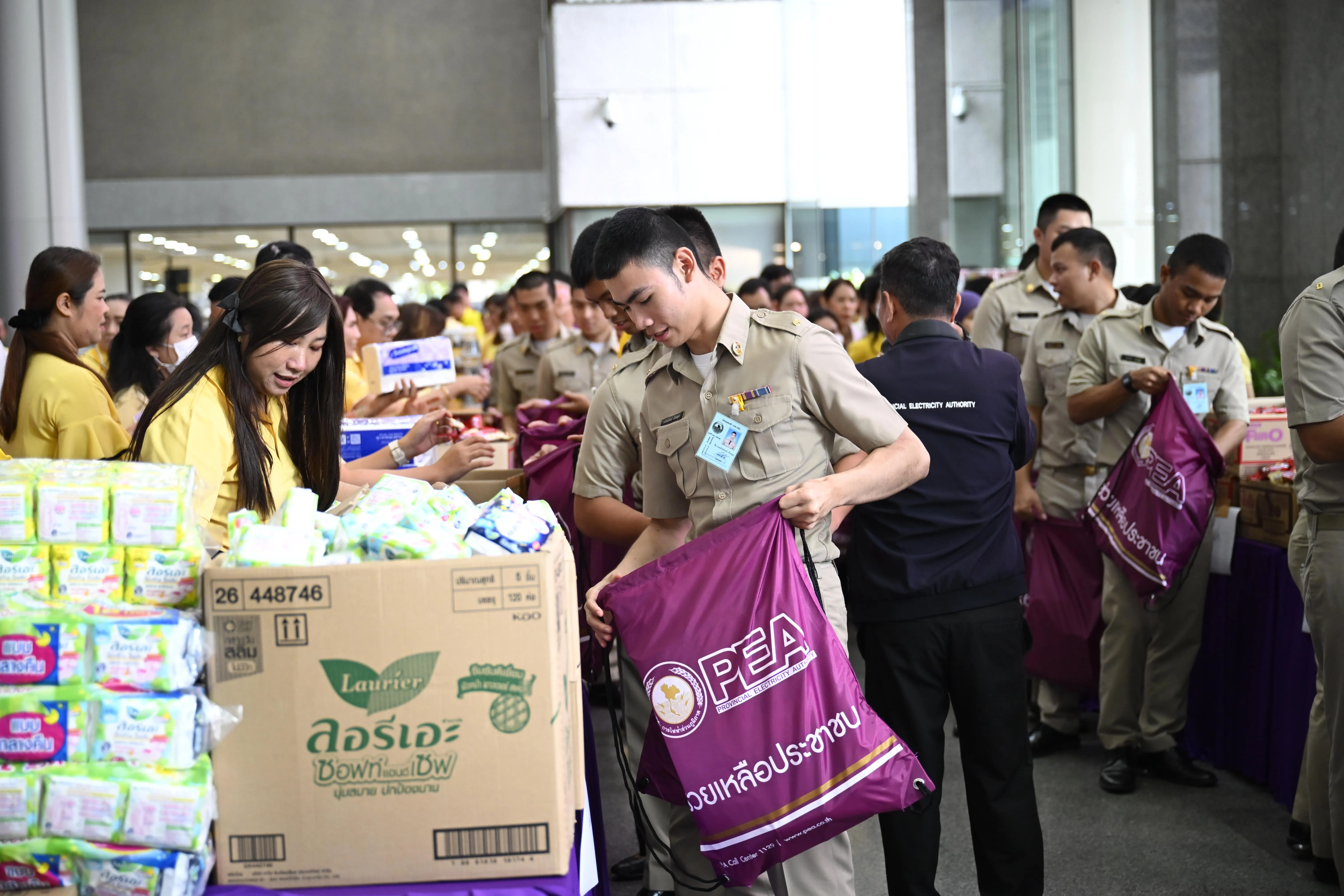 วันที่ 30 กรกฎาคม 2568 นายมงคล ตรีกิจจานนท์ ผู้ว่าการการไฟฟ้าส่วนภูมิภาค นำคณะผู้บริหาร พนักงาน นักเรียนช่าง กฟภ. และลูกจ้างร่วมบรรจุถุงยังชีพกว่า 2,000 ถุง เพื่อมอบให้กับผู้ที่ได้รับผลกระทบจากน้ำท่วมและเหตุการณ์ความไม่สงบชายแดนไทย-กัมพูชา ณ โถง ชั้น 1 อาคาร 4 สำนักงานใหญ่ การไฟฟ้าส่วนภูมิภาค