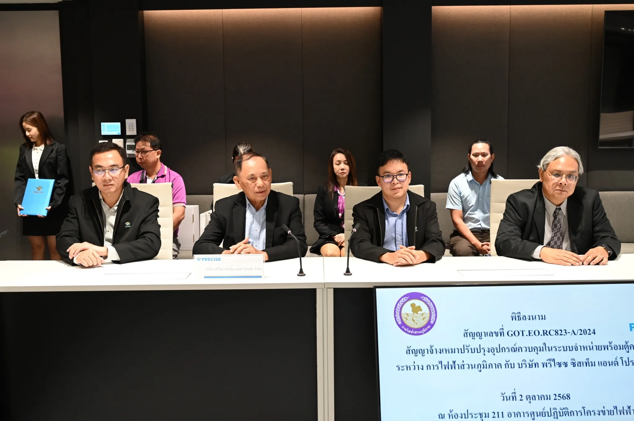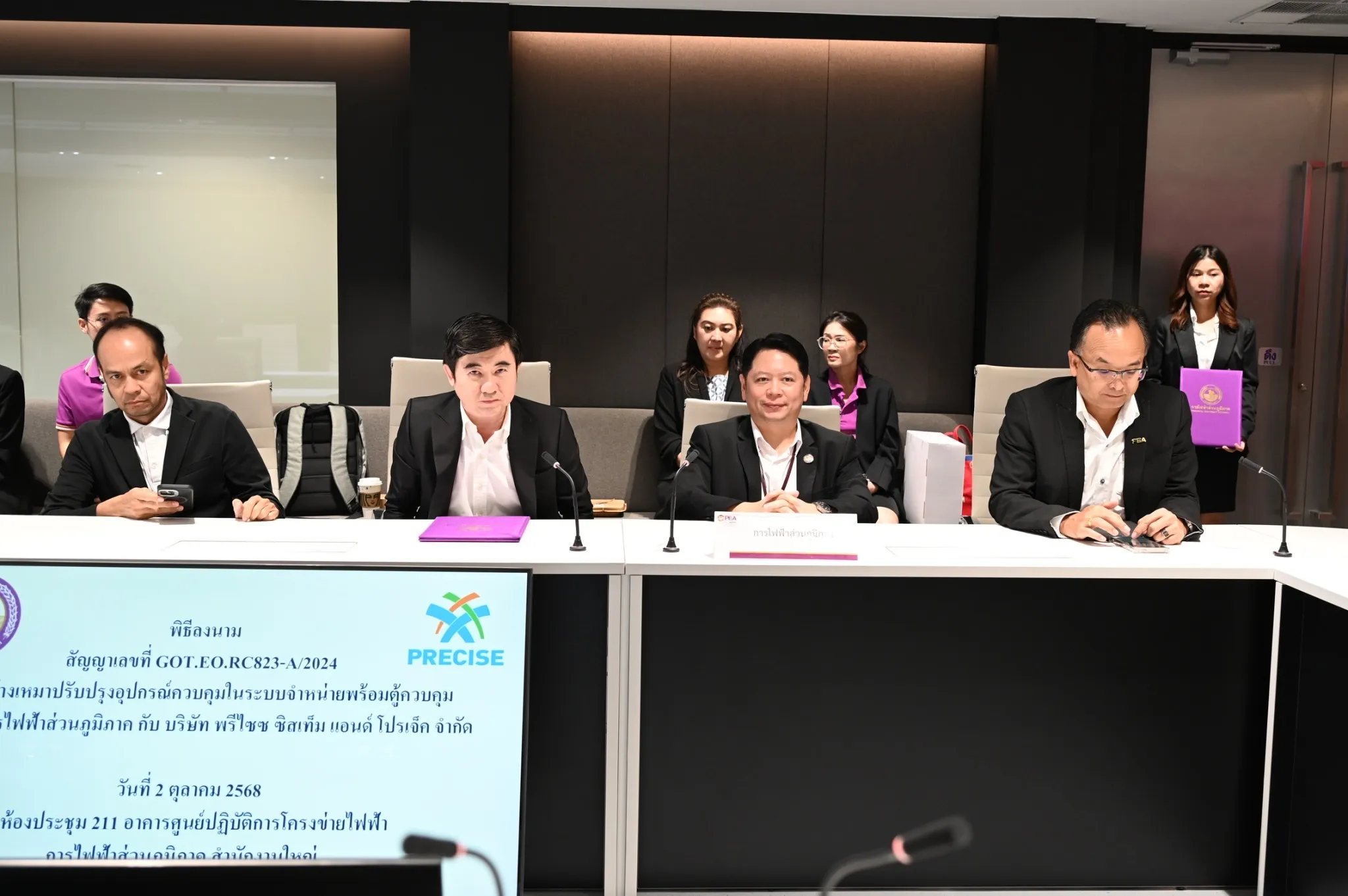 วันที่ 2 ตุลาคม 2568 นายอุดมศักดิ์ เต็มวงษ์ รองผู้ว่าการการไฟฟ้าส่วนภูมิภาค และนายอนุศาสน์ วรรณโท ประธานเจ้าหน้าที่ปฏิบัติการสายธุรกิจ บริษัท พรีไซซ ซิสเท็ม แอนด์ โปรเจ็ค จำกัด ร่วมลงนามสัญญาจ้างเหมาปรับปรุงอุปกรณ์ควบคุมในระบบจำหน่ายพร้อมตู้ควบคุม ณ ห้อง 211 อาคารศูนย์สั่งการระบบไฟฟ้า สำนักงานใหญ่ การไฟฟ้าส่วนภูมิภาค