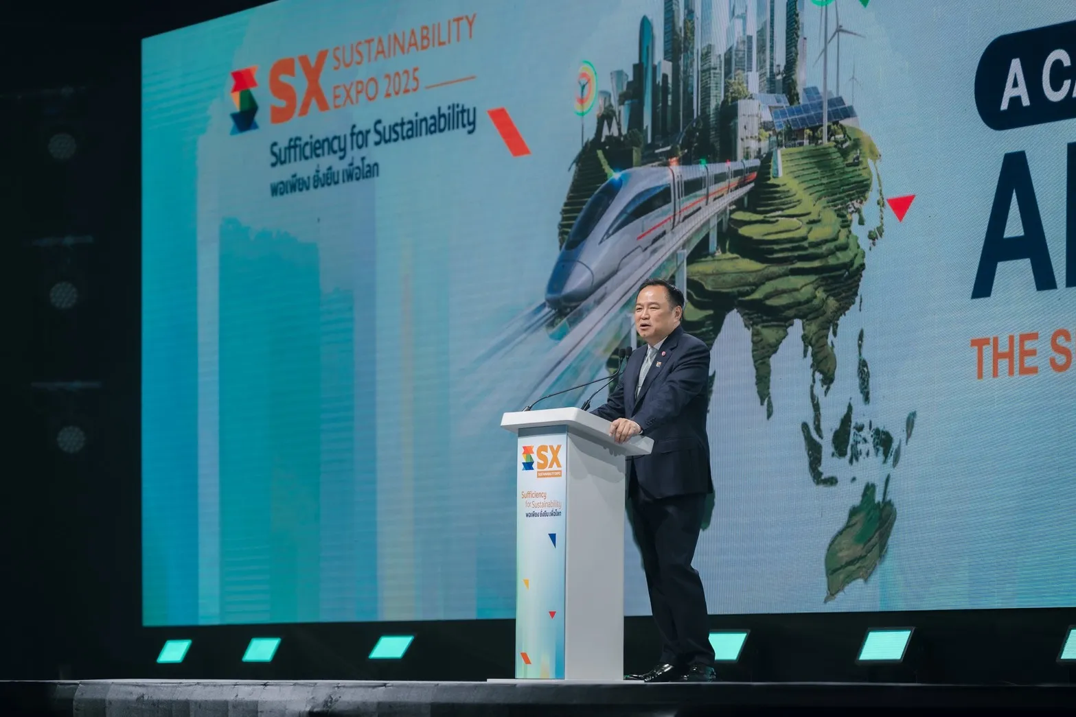 วันที่ 3 ตุลาคม 2568 นายอนุทิน ชาญวีรกูล นายกรัฐมนตรีและรัฐมนตรีว่าการกระทรวงมหาดไทย ปาฐกถาพิเศษ เรื่อง A Call for Adaptation The Sustainability in Trade & Industry ในงาน “มหกรรมความยั่งยืนที่ใหญ่ที่สุดในอาเซียน Sustainability Expo 2025 (SX 2025) โดยมี นายมงคล ตรีกิจจานนท์ ผู้ว่าการการไฟฟ้าส่วนภูมิภาค ร่วมงาน เพื่อร่วมขับเคลื่อนด้านความยั่งยืนในทุกมิติ ทั้งมิติเศรษฐกิจ สังคม และสุขภาพ เพื่อประโยชน์ที่ยั่งยืนของประชาชน พร้อมก้าวให้ทันโลกที่เปลี่ยนแปลงอย่างรวดเร็ว ภายใต้แนวคิด “พอเพียง ยั่งยืน เพื่อโลก” ณ ศูนย์ประชุมแห่งชาติสิริกิติ์