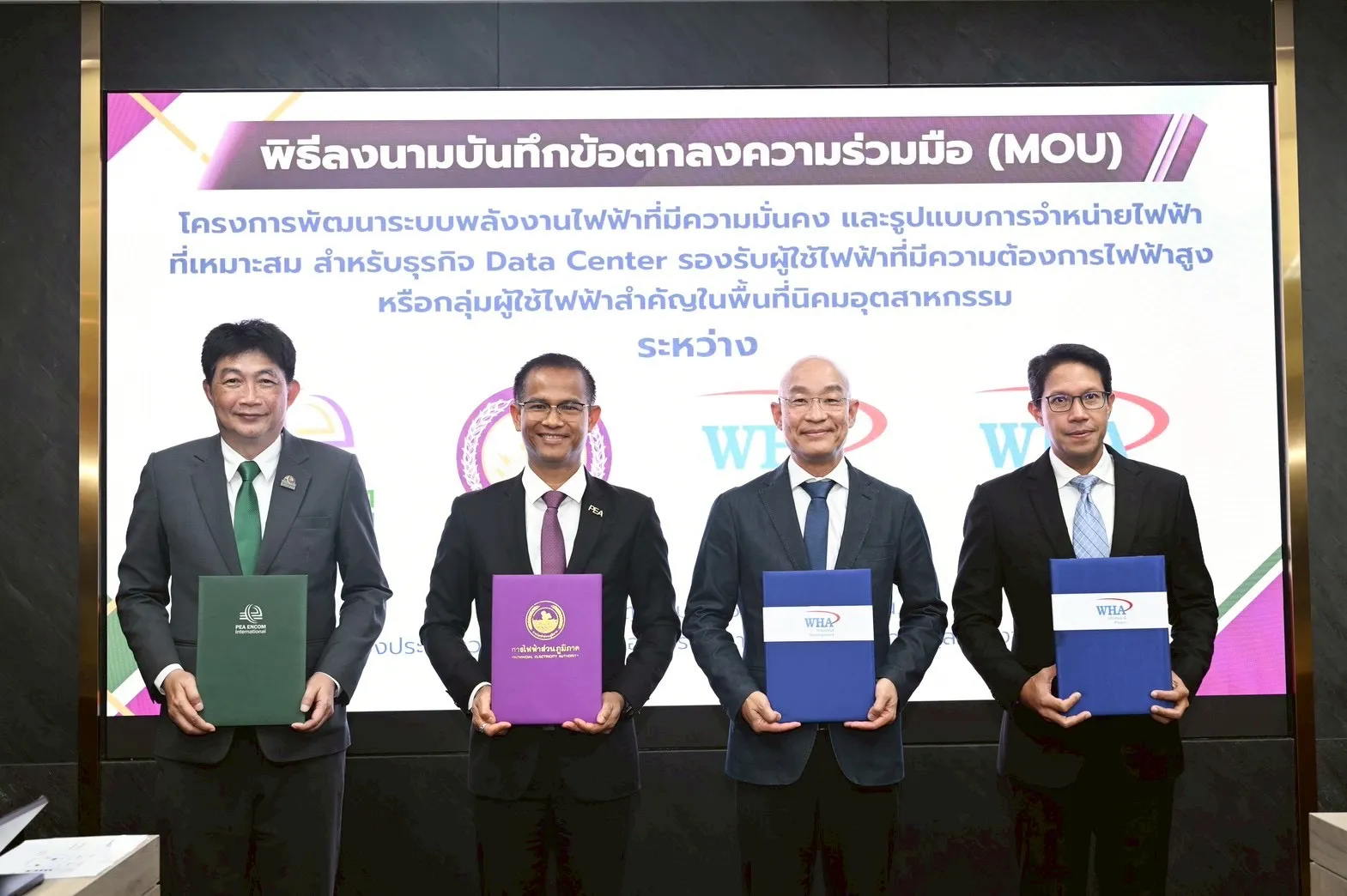 วันที่ 3 ตุลาคม 2568 นายประดิษฐ์ เฟื่องฟู รองผู้ว่าการการไฟฟ้าส่วนภูมิภาค นายปจงวิช พงษ์ศิวาภัย ประธานเจ้าหน้าที่บริหาร บริษัท ดับบลิวเอชเอ อินดัสเตรียล ดีเวลลอปเมนท์ จำกัด (มหาชน) นายอัครินทร์ ประเทืองสิทธิ์ รองประธานเจ้าหน้าที่บริหารและประธานเจ้าหน้าที่ฝ่ายปฏิบัติการ บริษัท ดับบลิวเอชเอ ยูทิลิตี้ส์แอนด์ พาวเวอร์ จำกัด (มหาชน) นายธีระ ศรีใหม่ รักษาการ กรรมการผู้จัดการใหญ่ บริษัท พีอีเอ เอ็นคอม อินเตอร์เนชั่นแนล จำกัด ร่วมลงนามในบันทึกข้อตกลงความร่วมมือโครงการพัฒนาระบบพลังงานไฟฟ้าที่มีความมั่นคง และรูปแบบการจำหน่ายไฟฟ้าที่เหมาะสมสำหรับธุรกิจ Data Center รองรับผู้ใช้ไฟฟ้าที่มีความต้องการไฟฟ้าสูงหรือกลุ่มผู้ใช้ไฟฟ้าสำคัญในพื้นที่นิคมอุตสาหกรรม ณ ห้องทวาราวดี ชั้น 22 อาคาร 4 สำนักงานใหญ่ การไฟฟ้าส่วนภูมิภาค