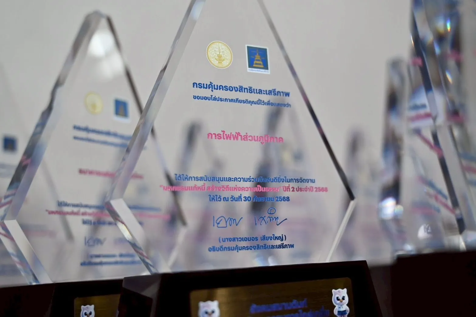 วันที่ 3 ตุลาคม 2568 นายมนต์ชัย ดานุโพธิ์บริบูรณ์ รองผู้ว่าการการไฟฟ้าส่วนภูมิภาค รับโล่ประกาศเกียรติคุณในงานวันคล้ายวันสถาปนากรมคุ้มครองสิทธิและเสรีภาพ ครบรอบปีที่ 23 ณ กระทรวงยุติธรรม ถนนแจ้งวัฒนะ