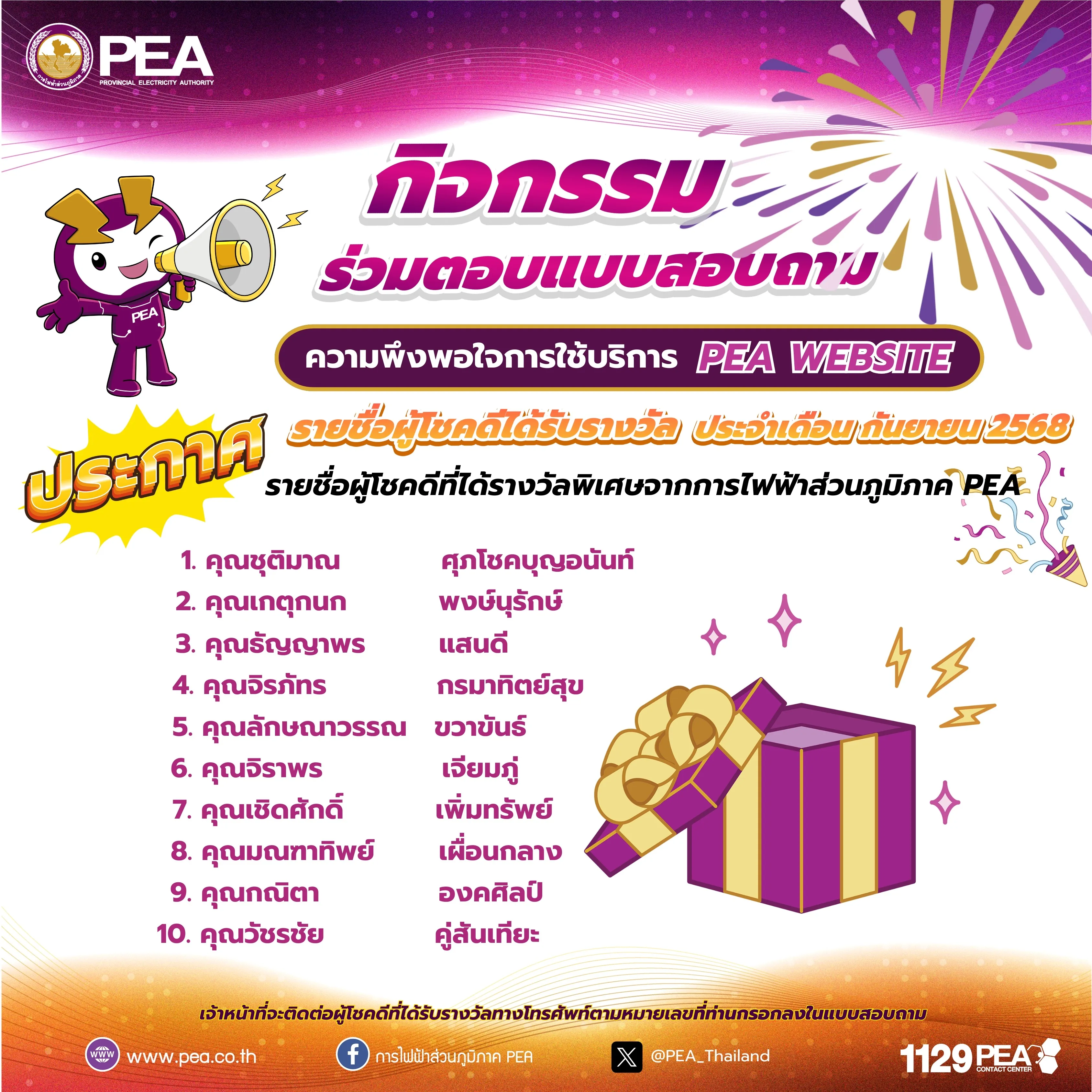 â ð āļāļīāļāļāļĢāļĢāļĄāļĢāđāļ§āļĄāļāļāļāđāļāļāļŠāļāļāļāļēāļĄāļāļ§āļēāļĄāļāļķāļāļāļāđāļāļāļēāļĢāđāļāđāļāļĢāļīāļāļēāļĢ PEA Website āļāļĢāļ°āļāļģāđāļāļ·āļāļāļāļąāļāļĒāļēāļĒāļ 2568