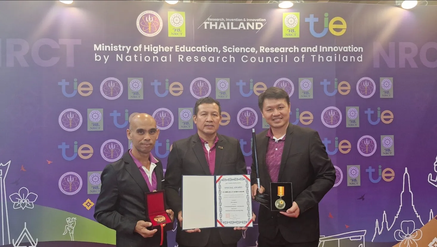 2.รางวัลระดับเหรียญเงิน (SILVER MEDAL AWARD) จากผลงาน เครื่องทดสอบถุงมือยางไฟฟ้าแรงสูง (Insulating Gloves Tester) เป็นเครื่องทดสอบถุงมือยางไฟฟ้าแรงสูงอัตโนมัติ ครอบคลุมตั้งแต่ Class 00–Class 4 โดยตรวจวัดกระแสไฟฟ้ารั่วและแสดงผลการทดสอบอย่างแม่นยำผลการทดลองและการทดสอบยืนยันว่าระบบสามารถตรวจจับรอยรั่วและจุดบกพร่องได้อย่างมีประสิทธิภาพ ค่าความคลาดเคลื่อนน้อยและช่วยลดทั้งเวลาและค่าใช้จ่ายเมื่อเทียบกับการทดสอบภายนอก