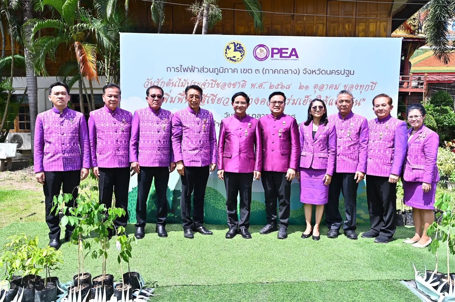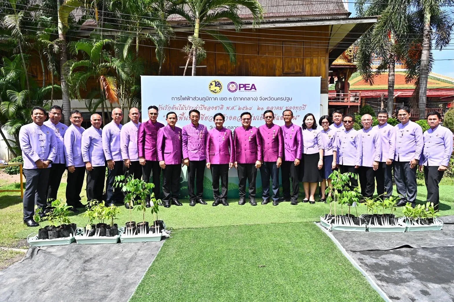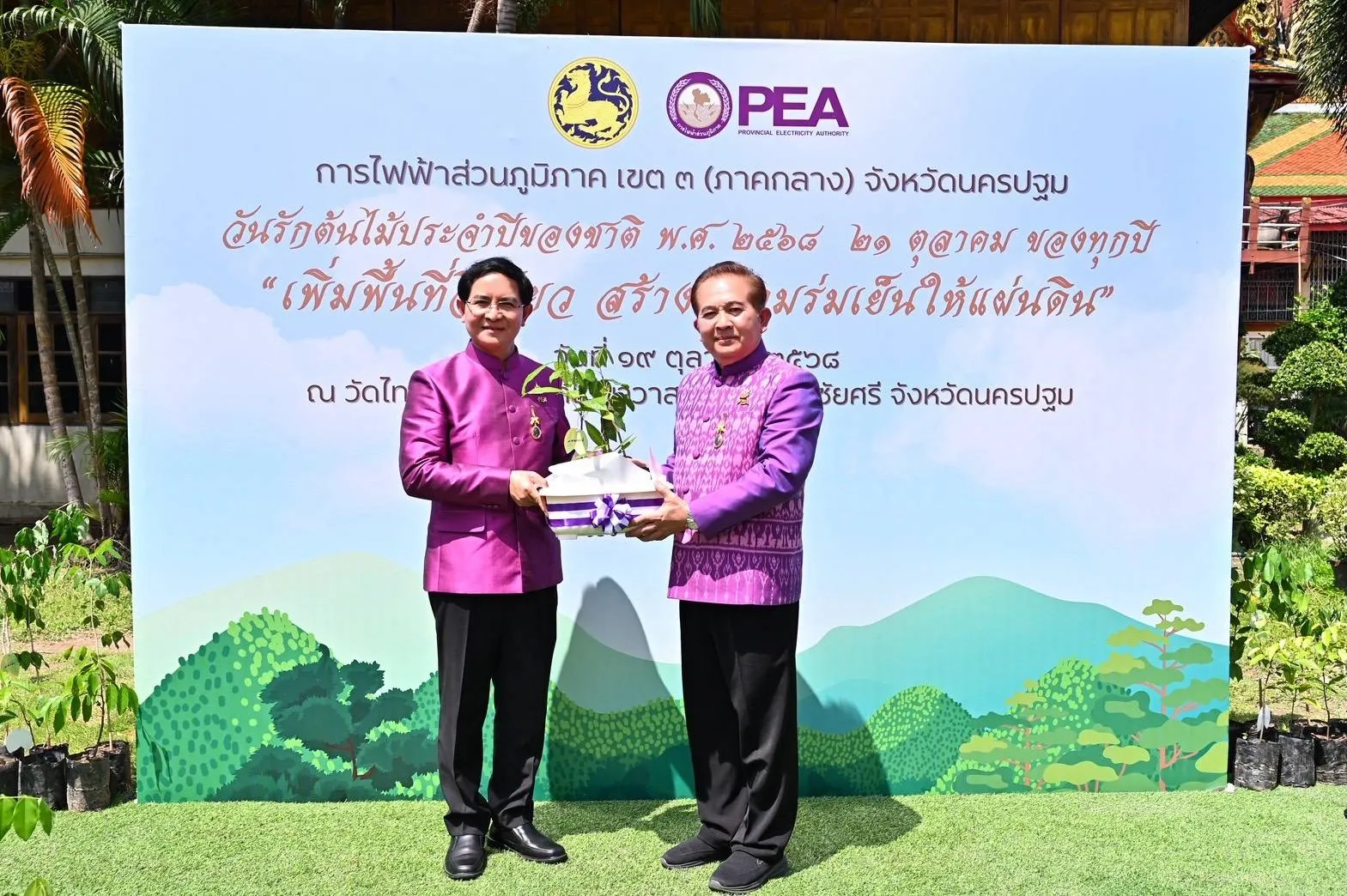 นายมงคล ตรีกิจจานนท์ ผู้ว่าการการไฟฟ้าส่วนภูมิภาค ให้เกียรติเป็นประธานในกิจกรรม วันรักต้นไม้ประจำปีของชาติ พ.ศ. 2568 เนื่องในโอกาสวันคล้ายวันพระราชสมภพของสมเด็จพระศรีนครินทราบรมราชชนนี ในวันที่ 21 ตุลาคมของทุกปี เพื่อน้อมรำลึกถึงพระมหากรุณาธิคุณของสมเด็จพระศรีนครินทราบรมราชชนนี สร้างการปลูกจิตสำนึกรักและหวงแหนทรัพยากรป่าไม้ของชาติ โดยส่งมอบต้นกล้าให้กับ ผู้บริหาร และ ผู้จัดการการไฟฟ้าส่วนภูมิภาค ในสังกัด เพื่อนำไปปลูกในพื้นที่รับผิดชอบ พร้อมปลูกต้นรวงผึ้ง เพื่อส่งเสริมการมีส่วนร่วมในการเพิ่มพื้นที่สีเขียว ลดปัญหาภาวะโลกร้อน และรักษาสมดุลของระบบนิเวศ โดยมี นายพีระพล ปูรณะโชติ รองผู้ว่าการการไฟฟ้าส่วนภูมิภาค นายธนะ โชคพระสมบัติ ผู้ช่วยผู้ว่าการการไฟฟ้าส่วนภูมิภาค เขต 3 (ภาคกลาง) จังหวัดนครปฐม ให้การต้อนรับ ณ วัดไทยาวาส ตำบลไทยาวาส อำเภอนครชัยศรี จังหวัดนครปฐม