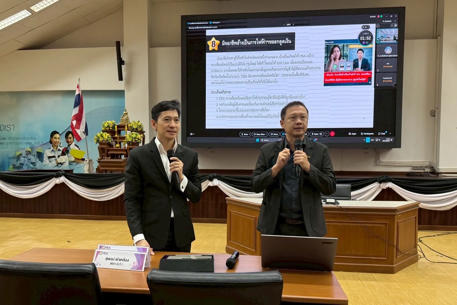 วันที่ 30 ตุลาคม 2568 นายสุพจน์ คำเหลือง ผู้ช่วยผู้ว่าการการไฟฟ้าส่วนภูมิภาค เขต 1 (ภาคเหนือ) จังหวัดเชียงใหม่ เป็นประธานเปิดกิจกรรมทบทวนแนวทางการจัดการการสื่อสารในภาวะวิกฤตของ PEA ประจำปี 2567 ณ ห้องประชุมนพบุรีศรีนครพิงค์ การไฟฟ้าส่วนภูมิภาค เขต 1 (ภาคเหนือ) จังหวัดเชียงใหม่และผ่านระบบ Online