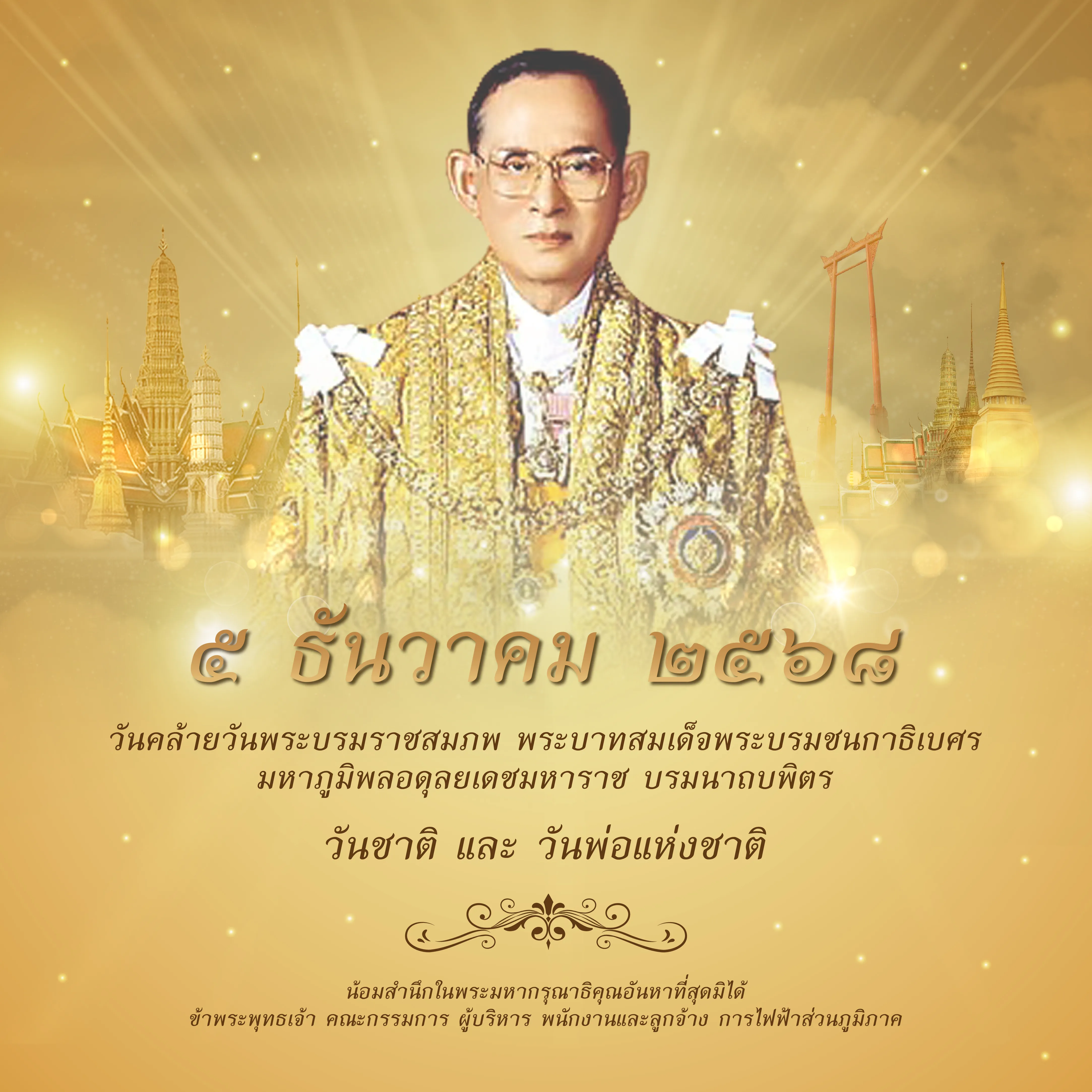 5 ธันวาคม 2568๕ ธันวาคม ๒๕๖๘วันคล้ายวันพระบรมราชสมภพ พระบาทสมเด็จพระบรมชนกาธิเบศร มหาภูมิพลอดุลยเดชมหาราช บรมนาถบพิตรวันชาติ และ วันพ่อแห่งชาติน้อมสำนึกในพระมหากรุณาธิคุณอันหาที่สุดมิได้ข้าพระพุทธเจ้า คณะกรรมการ ผู้บริหาร พนักงานและลูกจ้าง การไฟฟ้าส่วนภูมิภาคแชร์โพสต์นี้FacebookTwitterLineข่าวที่คุณอาจสนใจPEA ร่วมประชุมติดตามสถานการณ์และการให้ความช่วยเหลือผู้ประสบภัยในพื้นที่ภาคใต้7 ธันวาคม 2568๗ ธันวาคม วันคล้ายวันประสูติ สมเด็จพระเจ้าลูกเธอ เจ้าฟ้าพัชรกิติยาภา...7 ธันวาคม 2568PEA...6 ธันวาคม 2568PEA รับมอบชุด Power Kit (แผงเมนสวิตช์ชั่วคราว)5 ธันวาคม 2568