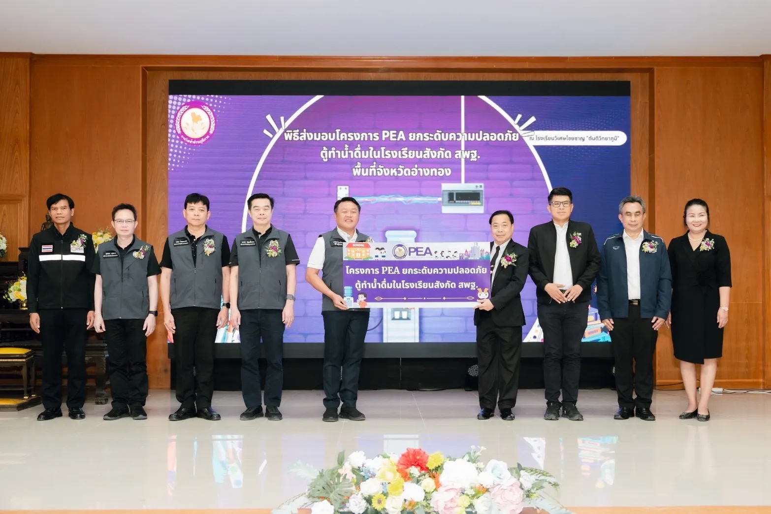 การไฟฟ้าส่วนภูมิภาค (PEA) ดำเนินโครงการ PEA ยกระดับความปลอดภัยตู้ทำน้ำดื่มในโรงเรียนสังกัด สพฐ. เพื่อเสริมสร้างความปลอดภัยให้แก่นักเรียน ครู และบุคลากรทางการศึกษา โดยมุ่งปรับปรุงและตรวจสอบระบบไฟฟ้าตู้ทำน้ำดื่มให้ได้มาตรฐานเเละมีความปลอดภัย สำหรับปี 2568 การไฟฟ้าส่วนภูมิภาค เขต 1 (ภาคกลาง) จังหวัดพระนครศรีอยุธยา มีเป้าหมายดำเนินโครงการฯ ในพื้นที่จังหวัดอ่างทอง จำนวน 41 แห่ง โดยติดตั้งอุปกรณ์ตัดไฟรั่วอัตโนมัติ (RCD) 54 จุด และติดตั้งสายดิน 48 จุด