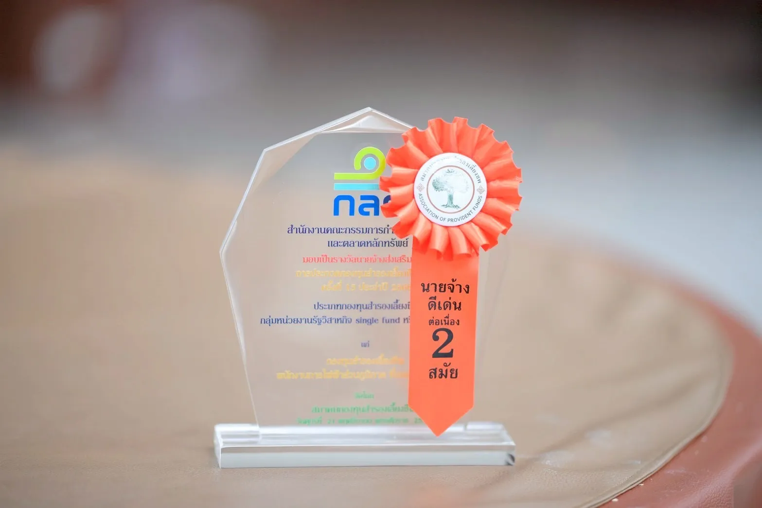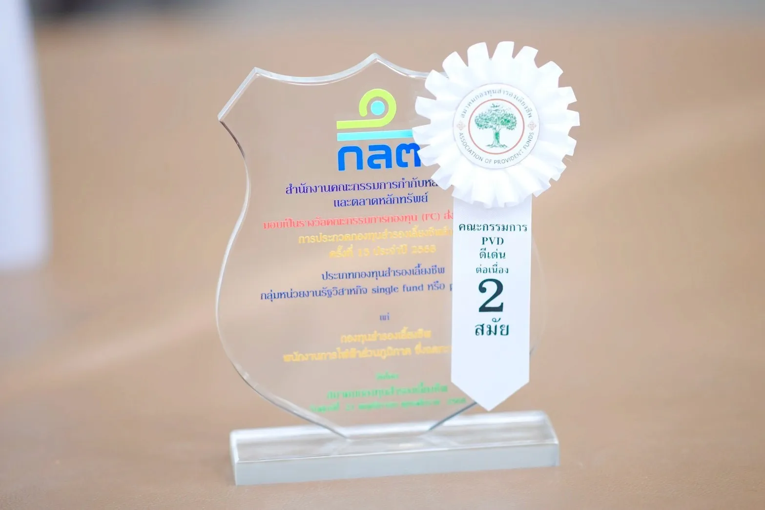2. รางวัลนายจ้างส่งเสริมดีเด่น ประเภทกองทุนสำรองเลี้ยงชีพ กลุ่มหน่วยงานรัฐวิสาหกิจ Single Fund หรือ Pooled Fund (2 ปี ติดต่อกัน)