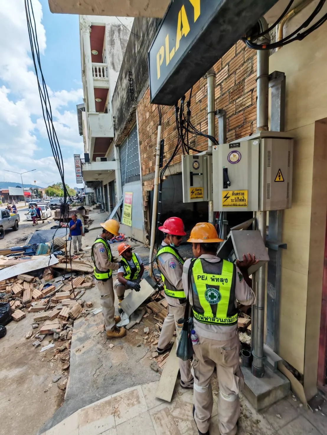โดยเจ้าหน้าที่ PEA ได้เร่งทำงานแข่งกับเวลาในหลายจุดที่ได้รับความเสียหาย ทั้งการปรับปรุงอุปกรณ์ เปลี่ยนมิเตอร์ และทดสอบระบบ เพื่อให้ประชาชนในพื้นที่สามารถกลับมาใช้ไฟฟ้าได้ตามปกติอย่างปลอดภัยที่สุด