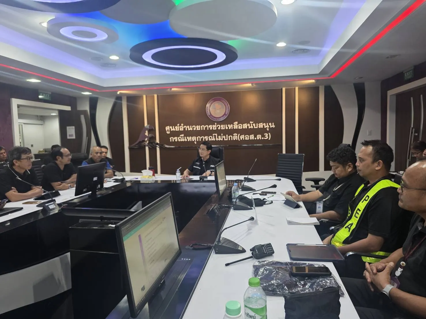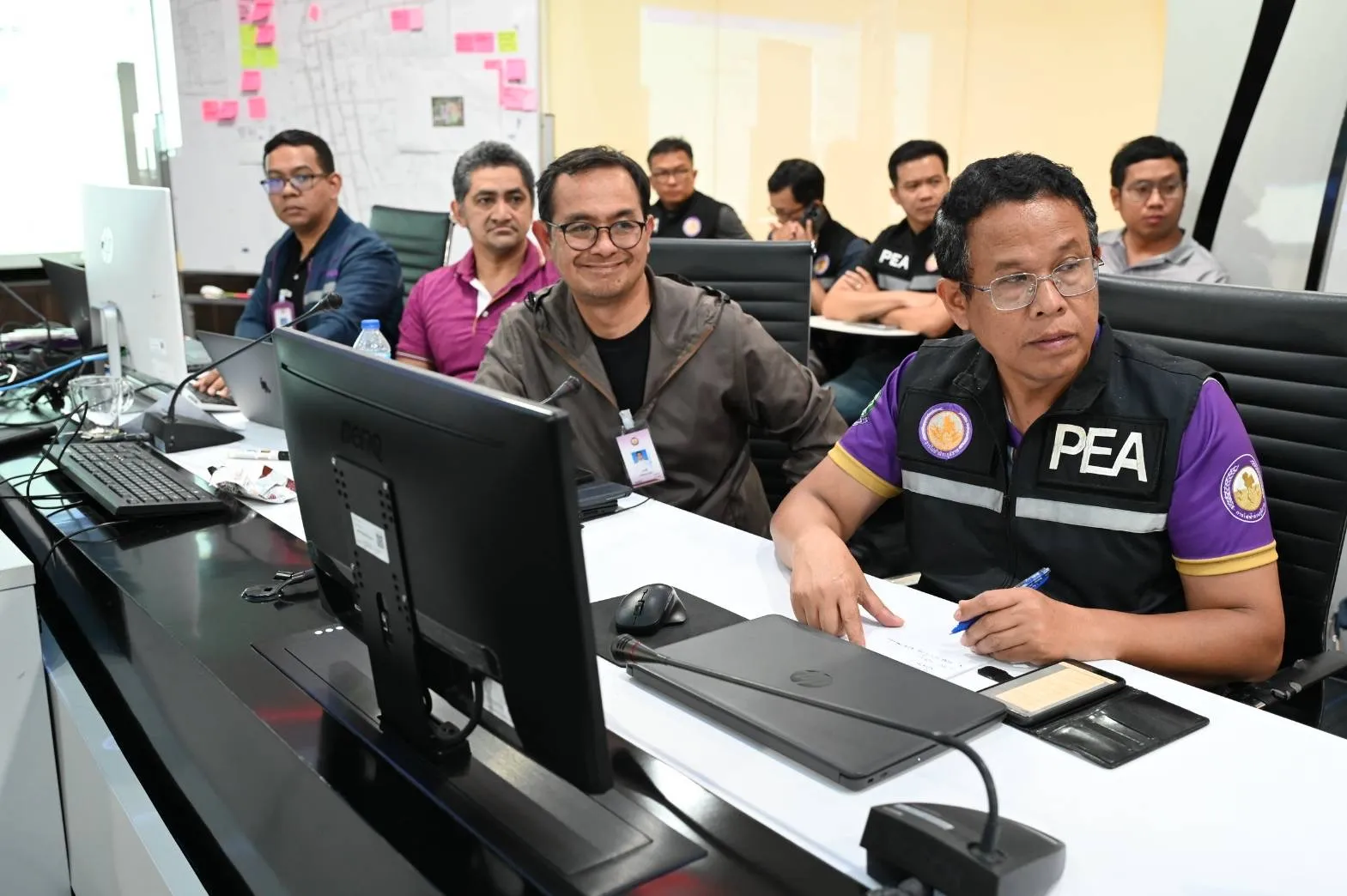 วันที่ 30 พฤศจิกายน 2568 เวลา 22.15 น. นายมงคล ตรีกิจจานนท์ ผู้ว่าการการไฟฟ้าส่วนภูมิภาค (PEA) ประชุมติดตามรับฟังสรุปผลการปฏิบัติงานประจำวันจากเจ้าหน้าที่ ที่ลงพื้นที่ฟื้นฟูระบบไฟฟ้าตลอดทั้งวันเกี่ยวกับความก้าวหน้าการฟื้นฟูและการจ่ายกระแสไฟฟ้า รวมถึงปัญหาอุปสรรคพร้อมกำชับเรื่องความปลอดภัยในการปฏิบัติงาน ณ ศูนย์อำนวยการช่วยเหลือสนับสนุน กรณีเหตุการณ์ไม่ปกติ (ศอส.ต.3)