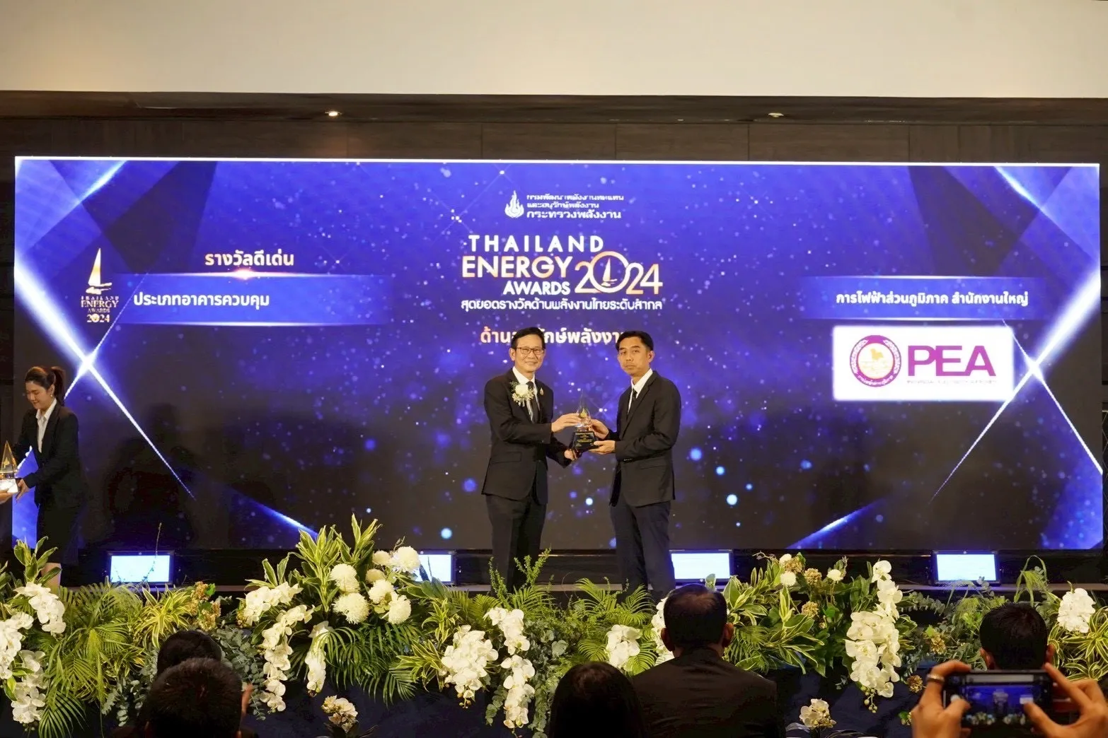 วันที่ 23 ธันวาคม 2568 การไฟฟ้าส่วนภูมิภาค (PEA) รับรางวัลดีเด่นด้านอนุรักษ์พลังงาน ประเภทอาคารควบคุม ในงาน Thailand Energy Awards 2024 จัดโดย กรมพัฒนาพลังงานทดแทนและอนุรักษ์พลังงาน กระทรวงพลังงาน ณ ห้องแซฟไฟร์ 202 อาคารอิมแพ็ค ฟอรั่ม ชั้น 2 อิมแพ็ค เมืองทองธานี จังหวัดนนทบุรี