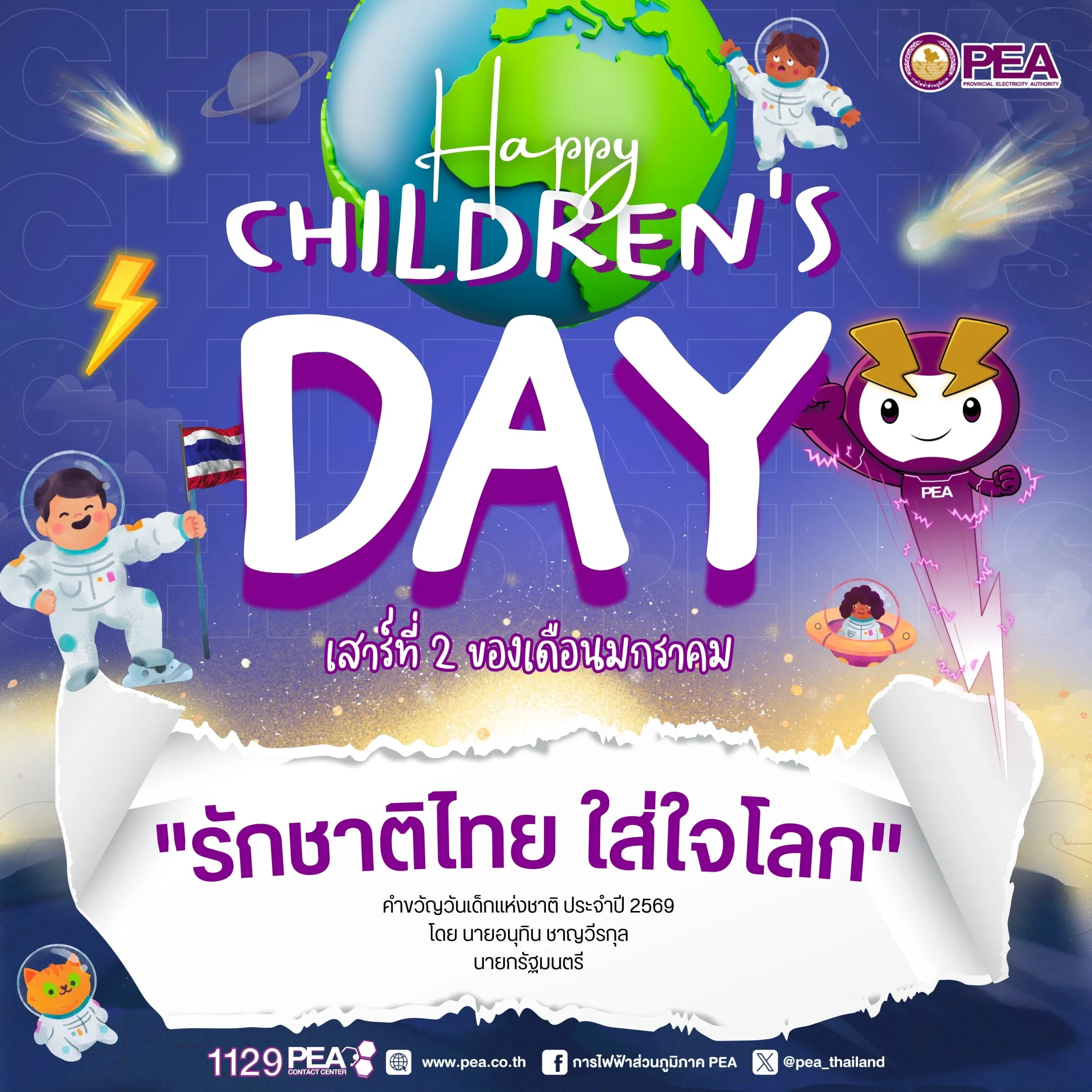 สุขสันต์วันเด็กแห่งชาติ ประจำปี 2569 🎊👶👧เพราะเด็กคือแสงสว่างของชาติ✨💡