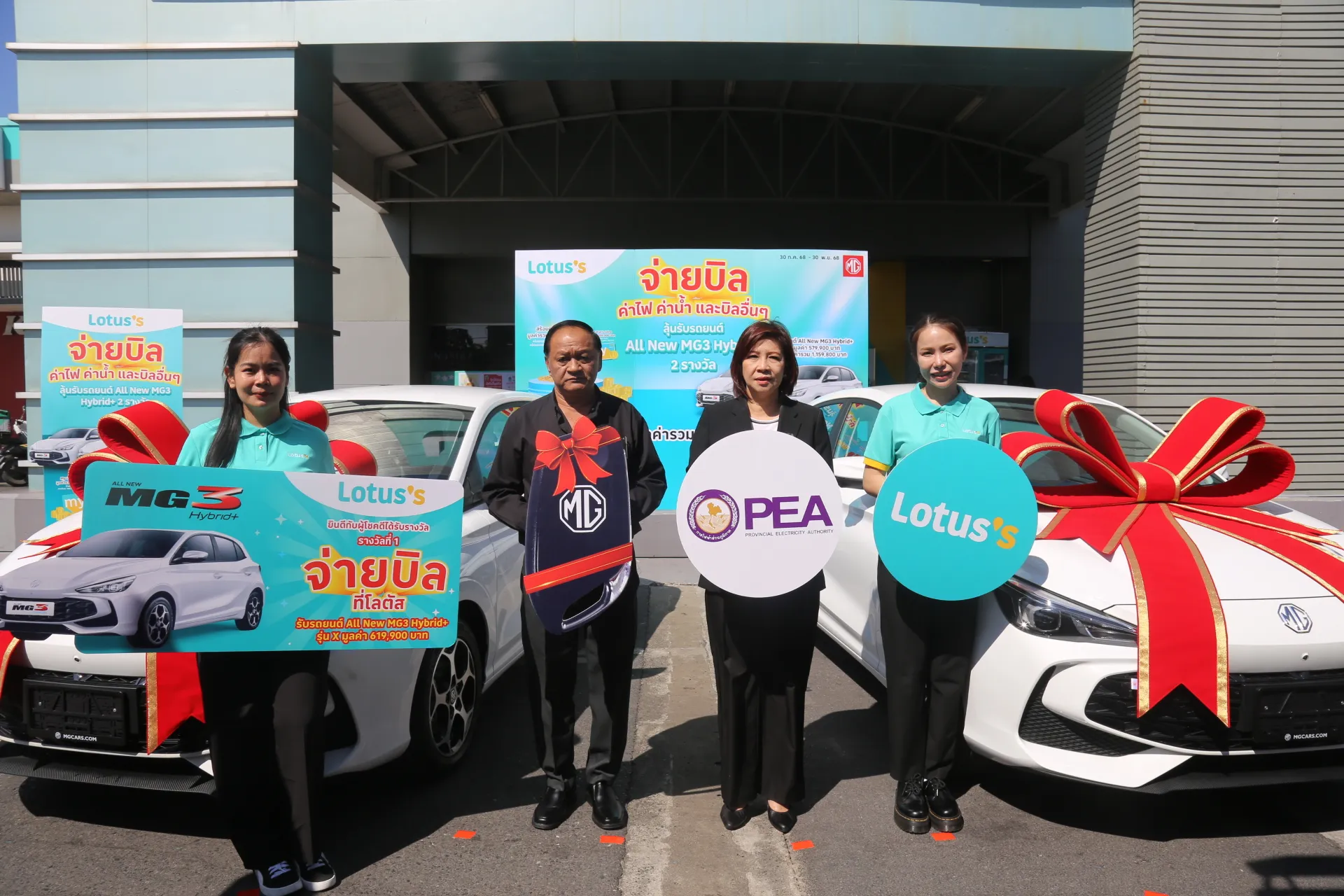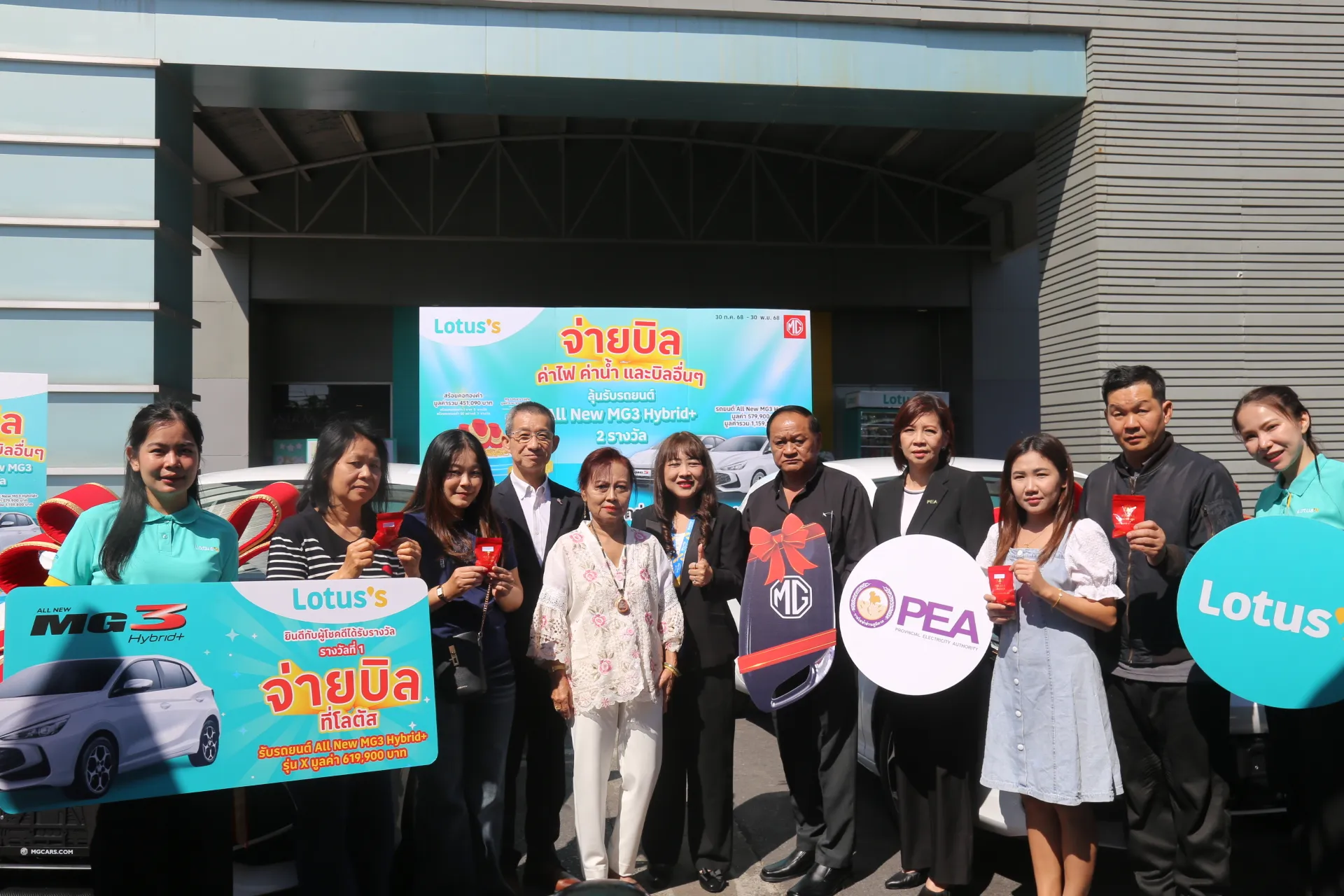 PEA ร่วมแสดงความยินดีกับผู้โชคดีได้รับรถยนต์ MG จากการจ่ายบิลค่าไฟฟ้าที่ Lotus's