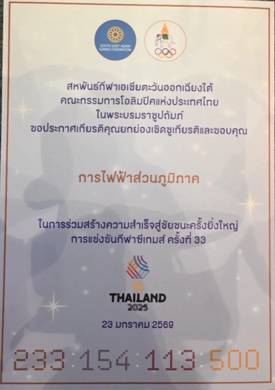 การไฟฟ้าส่วนภูมิภาค (PEA) มีบทบาทสำคัญในการอำนวยความสะดวกด้านแสงสว่างให้มีความเสถียรในขณะการแข่งขัน และภารกิจด้านอื่น ๆ ที่เกี่ยวข้อง ตลอดช่วงการแข่งขันกีฬาซีเกมส์ ครั้งที่ 33 ที่ประเทศไทยเป็นเจ้าภาพ จนสามารถสร้างผลงานเป็นที่ประจักษ์ นำชื่อเสียงและรอยยิ้มมาสู่พี่น้องชาวไทยทั่วประเทศ ถือเป็นความภาคภูมิใจของคณะผู้บริหารและพนักงาน PEA ทุกคน ที่ได้เป็นส่วนหนึ่งในการขับเคลื่อนวงการกีฬาไทยในระดับสากลให้ก้าวสู่ความสำเร็จ