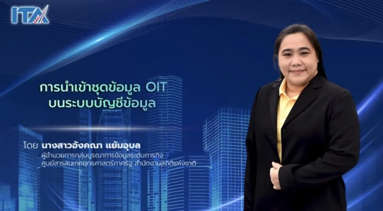 5) การนำเข้าชุดข้อมูล OIT บนระบบบัญชีข้อมูล โดย นางสาวอังคณา แย้มอุบล ผู้อำนวยการกลุ่มบูรณาการข้อมูลระดับกอง ศูนย์สารสนเทศยุทธศาสตร์ภาครัฐ สำนักงานสถิติแห่งชาติ