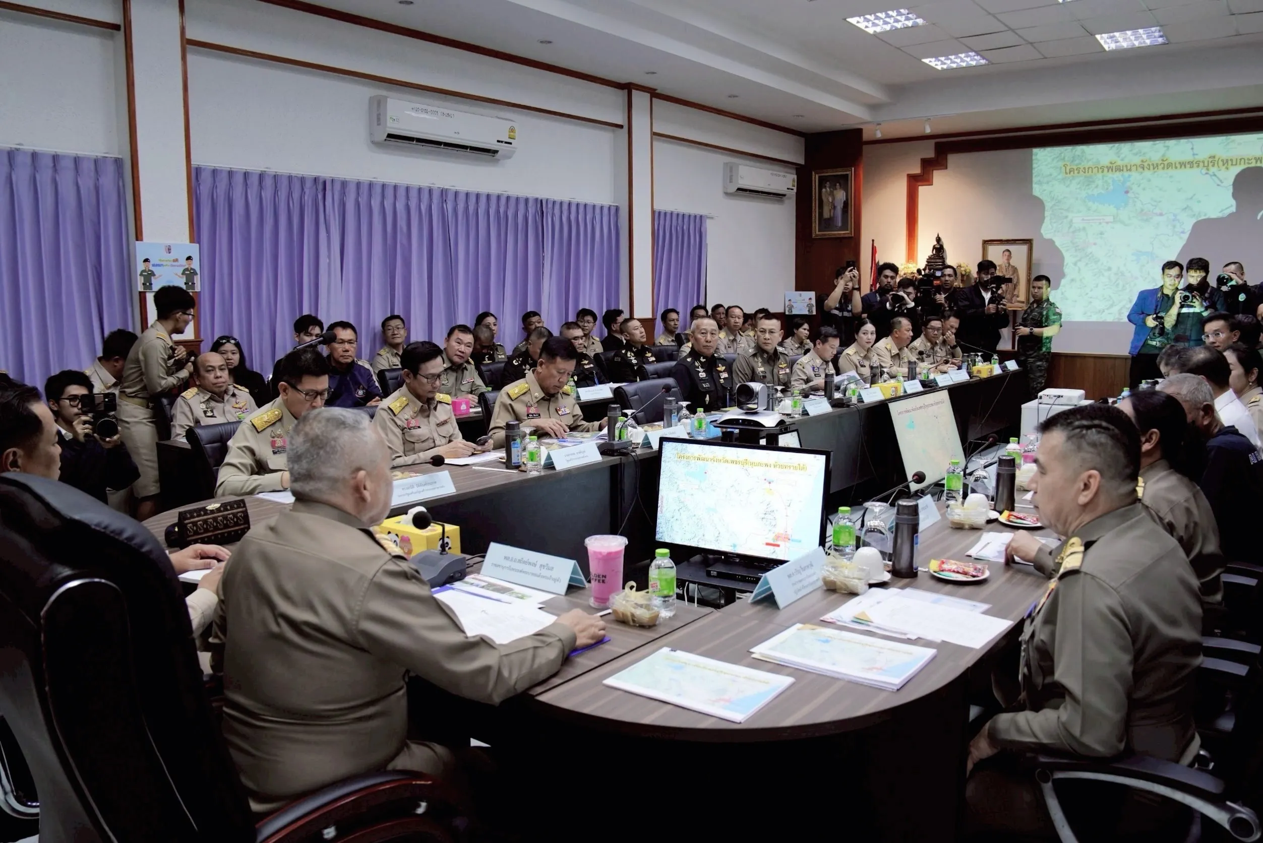 วันที่ 12 มีนาคม 2569 พลอากาศเอก สถิตย์พงษ์ สุขวิมล ราชเลขานุการในพระองค์พระบาทสมเด็จพระเจ้าอยู่หัว นายอนุทิน ชาญวีรกูล นายกรัฐมนตรีและรัฐมนตรีว่าการกระทรวงมหาดไทย พร้อมด้วยคณะรัฐมนตรี ปลัดกระทรวง หัวหน้าส่วนราชการ และภาคเอกชนที่เกี่ยวข้อง ประชุมและลงพื้นที่ติดตามความก้าวหน้าโครงการพัฒนาจังหวัดเพชรบุรี (หุบกะพง – ห้วยทรายใต้) โดยมี นายมงคล ตรีกิจจานนท์ ผู้ว่าการการไฟฟ้าส่วนภูมิภาค (PEA) และคณะผู้บริหาร รายงานความก้าวหน้าการขยายเขตระบบจำหน่ายไฟฟ้าในพื้นที่แก้มลิงลำห้วยใหญ่ ณ ห้องประชุมรังสิพราหมณกุล ค่ายนเรศวร จังหวัดเพชรบุรี