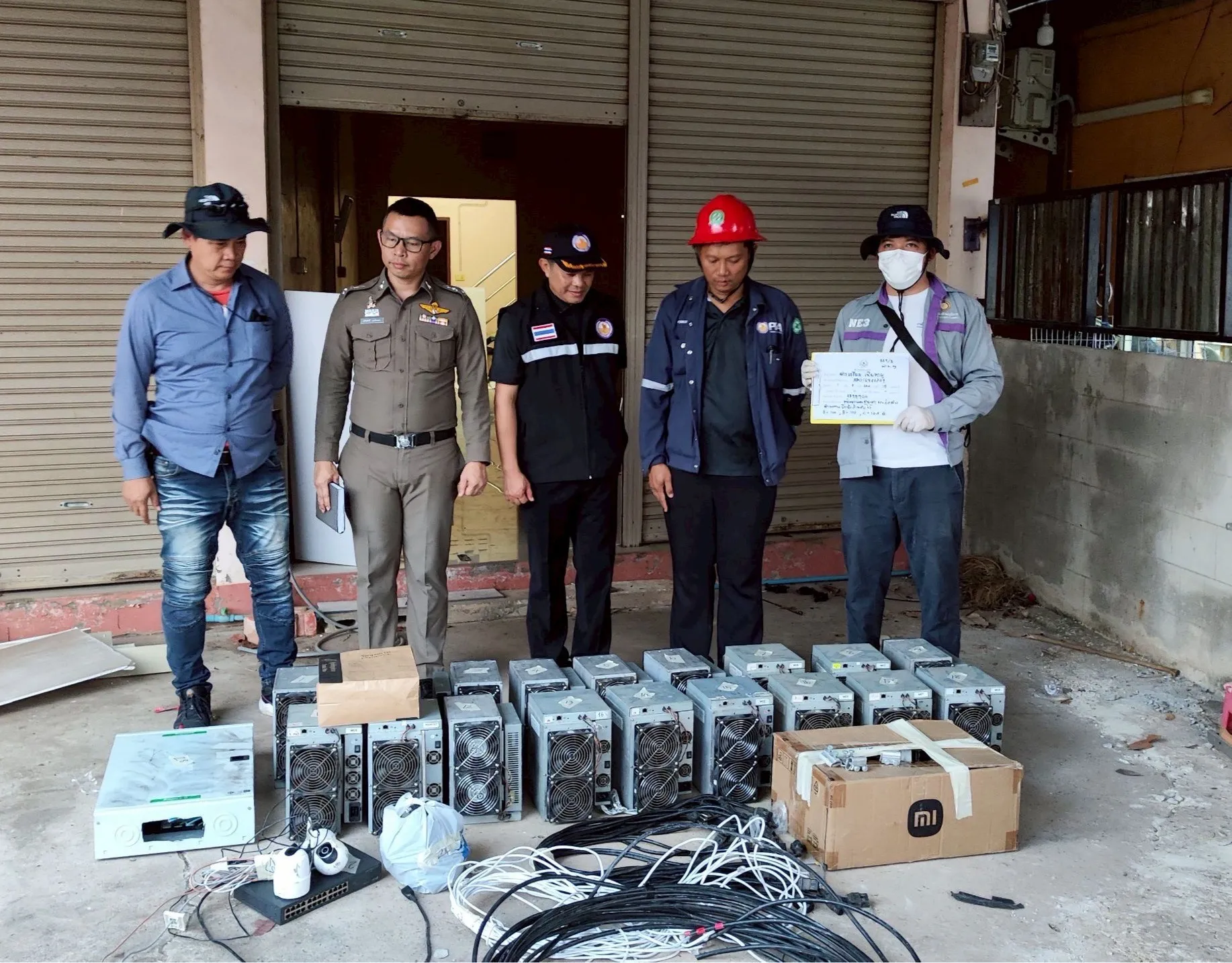 PEA สนธิกำลังตำรวจบุกทลายเหมืองบิตคอยน์เถื่อน ในพื้นที่นครชัยบุรินทร์
