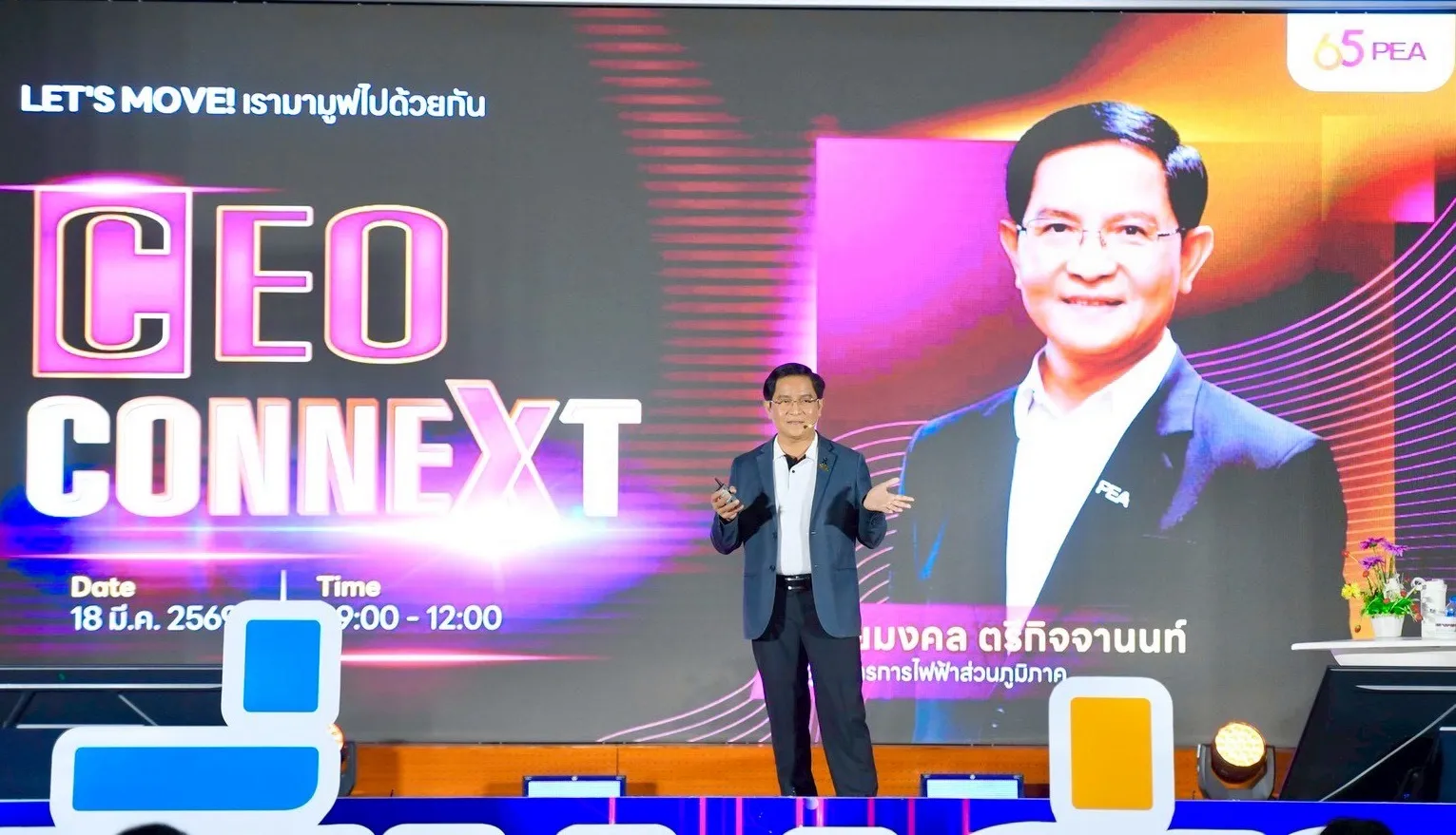 วันที่ 18 มีนาคม 2569 การไฟฟ้าส่วนภูมิภาค (PEA) จัดรายการ CEO CONNEXT โดยมีนายมงคล ตรีกิจจานนท์ ผู้ว่าการการไฟฟ้าส่วนภูมิภาค สื่อสารทิศทางการดำเนินงาน นโยบายสำคัญ และสถานการณ์ต่าง ๆ ขององค์กรให้ผู้บริหารและพนักงานรับทราบ ผลการดำเนินงานที่ผ่านมา กลยุทธ์การทำงาน “ลด เพิ่ม เร่ง สร้าง” และเน้นย้ำให้ผู้บริหารและพนักงาน “ในทุกวิกฤต เราจะสร้างโอกาสไปด้วยกัน” พร้อมแชร์ “ไอเดียดี มีรางวัล” และช่วง “ถามมา ตอบได้” เพื่อส่งเสริมการมีส่วนร่วมในการพัฒนาองค์กร