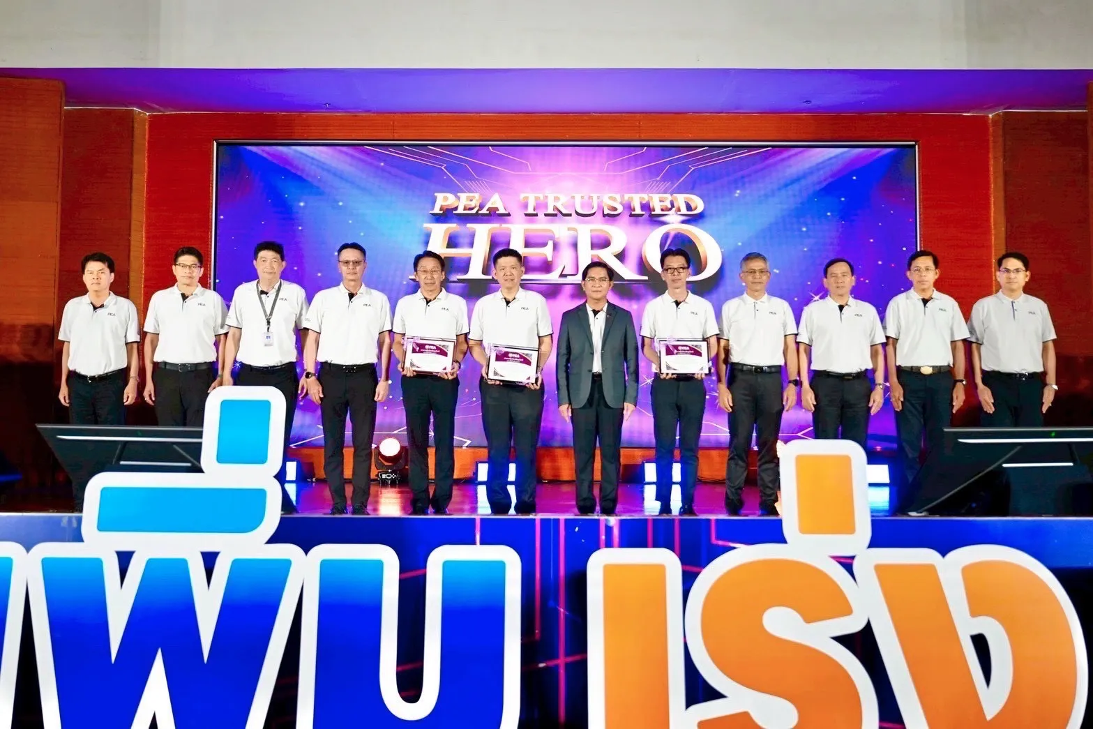 ผู้ว่าการการไฟฟ้าส่วนภูมิภาค มอบใบประกาศนียบัตรเชิดชูเกียรติ “PEA TRUSTED HERO” ให้แก่หน่วยงานที่สนับสนุนภารกิจเหตุการณ์อุทกภัยพื้นที่ภาคใต้ อาทิ อุปกรณ์ เครื่องมือ พนักงานและลูกจ้างที่ทำงานด้วยความทุ่มเทและเสียสละ โดยมีรองผู้ว่าการการไฟฟ้าส่วนภูมิภาค ผู้ช่วยผู้ว่าการการไฟฟ้าส่วนภูมิภาคหรือผู้แทน ทั้ง 12 เขต เป็นผู้รับมอบ และมอบโล่รางวัลเกียรติยศให้แก่ นายสำราญ ขุนฤทธิ์ ผู้ช่วยผู้ว่าการการไฟฟ้าส่วนภูมิภาค เขต 3 (ภาคใต้) จังหวัดยะลา ณ ห้องประชุมสุวรรณภูมิ ชั้น 6 อาคาร 4 สำนักงานใหญ่ การไฟฟ้าส่วนภูมิภาค และถ่ายทอดสดผ่านระบบ Webex