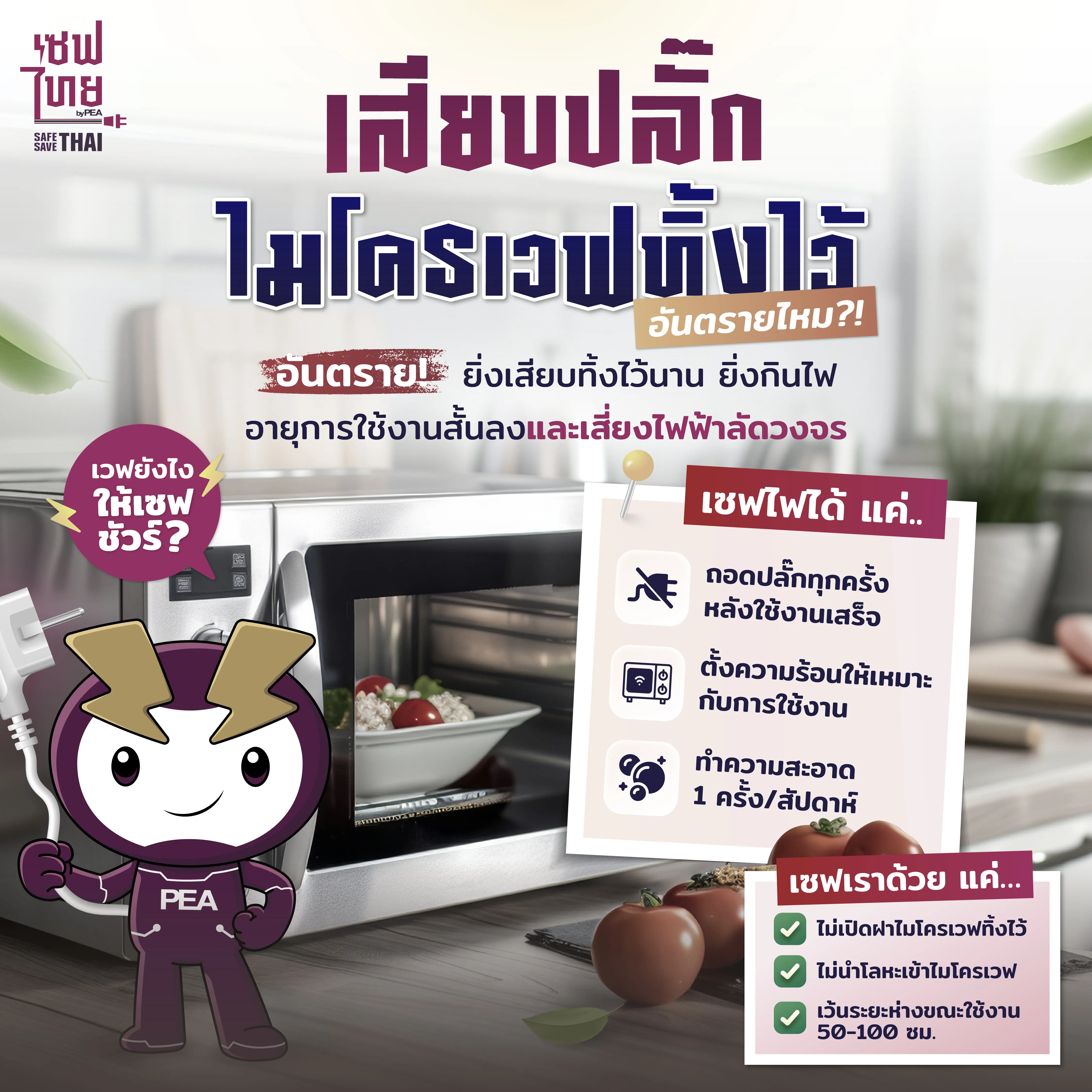 ‘ไมโครเวฟ’ อุปกรณ์คู่ครัวที่แทบทุกบ้านต้องมี ตัวช่วยให้การทำอาหารสะดวกจนหลายคนเผลอ “เสียบปลั๊กทิ้งไว้ตลอด” เพราะคิดว่าเดี๋ยวก็ได้ใช้ใหม่ โดยไม่รู้ว่า ยิ่งเสียบปลั๊กไว้นาน ก็ยิ่งเสี่ยง! ⚠️ ทั้งเปลืองไฟโดยใช่เหตุ และทำให้เกิดความร้อนสะสมจนไฟฟ้าลัดวงจรได้ 🔥
