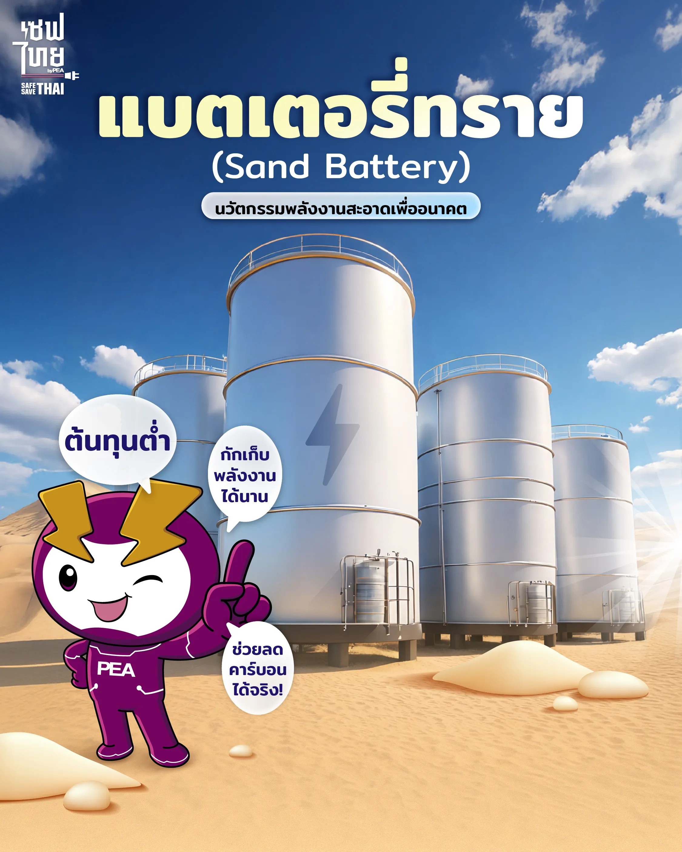 แบตเตอรี่ทราย (Sand Battery) คือ ระบบกักเก็บความร้อนด้วยทรายหรือหินบด โดยจะกักเก็บพลังงานความร้อนจากแหล่งพลังงานหมุนเวียน ซึ่งสามารถเก็บได้มากถึง 100 เมกะวัตต์ชั่วโมงเป็นเวลาหลายสัปดาห์ และสามารถนำมาใช้ได้ทุกเมื่อ ⚡️