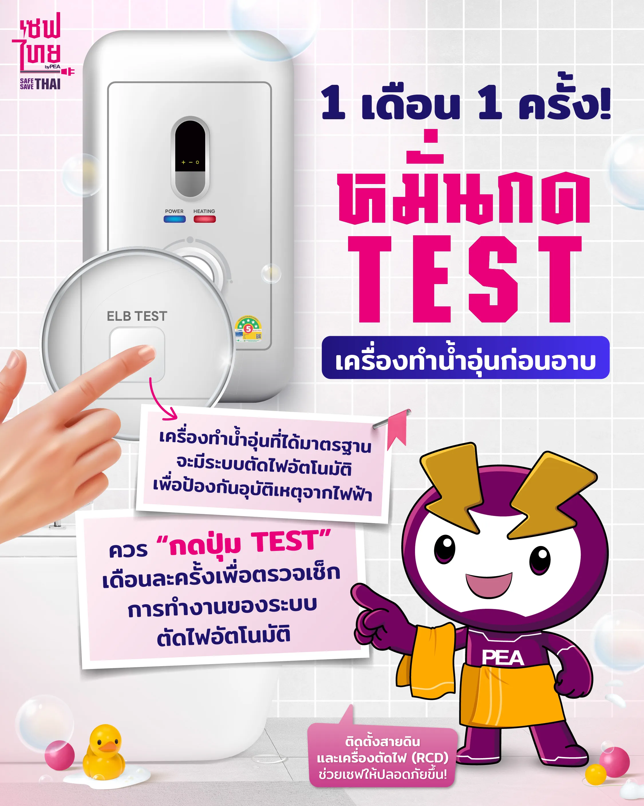 แค่เดือนละครั้ง หมั่นกด “TEST” เครื่องทำน้ำอุ่นเพื่อความปลอดภัย 🛀