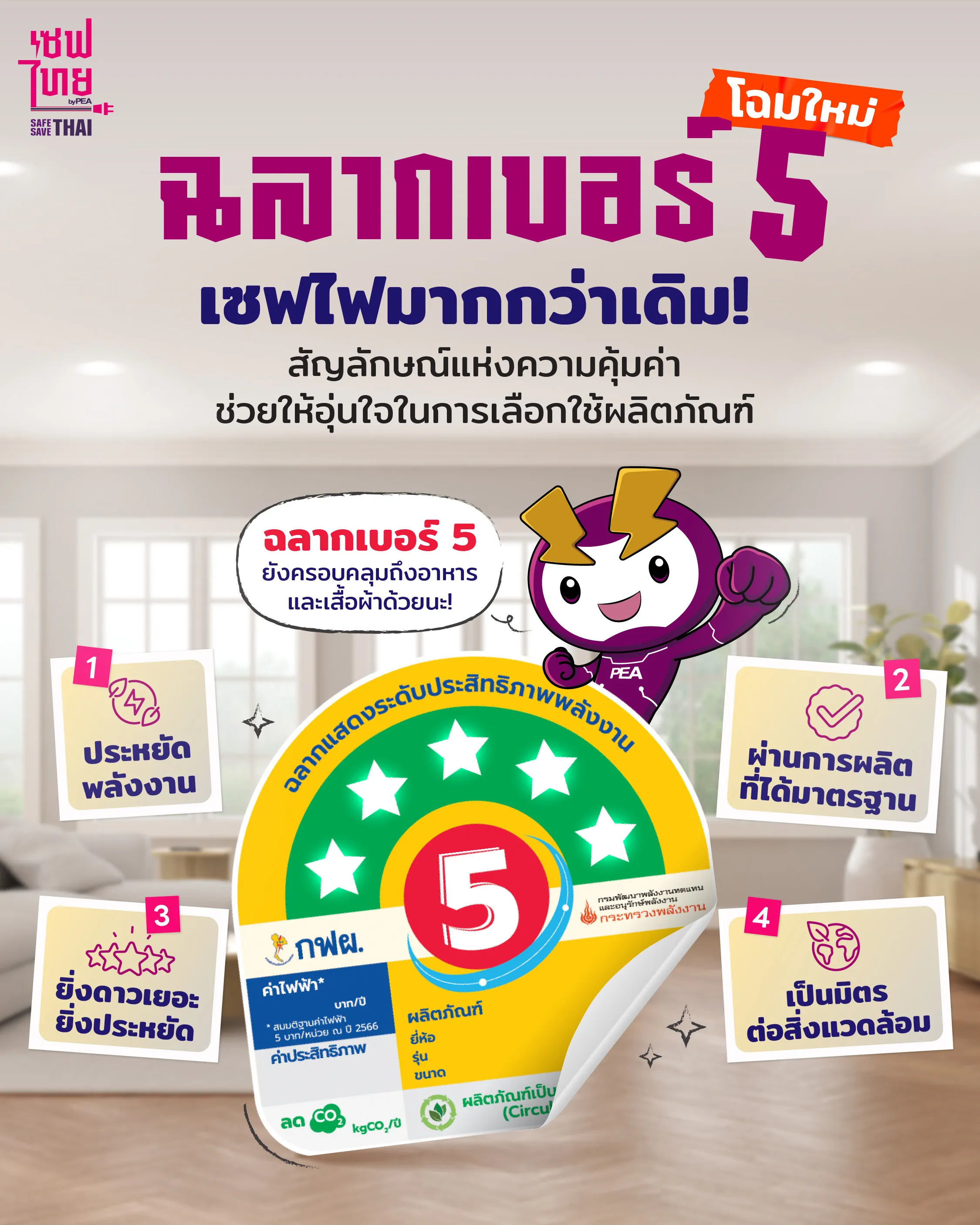14 กุมภาพันธ์ 2569ภาพลักษณ์อาจจะคล้ายเดิม แต่คุณภาพไม่เหมือนเดิม! 🖐️✨.ชวนมารู้จักกับ “ฉลากประหยัดพลังงานเบอร์ 5” โฉมใหม่! สัญลักษณ์แห่งความคุ้มค่า การันตีความอุ่นใจในการเลือกใช้ผลิตภัณฑ์ ⭐️⭐️⭐️⭐️⭐️Tag:เซฟไทยsafesavethaiการไฟฟ้าส่วนภูมิภาคPEAฉลากเบอร์5ประหยัดพลังงานแชร์โพสต์นี้FacebookTwitterLineข่าวที่คุณอาจสนใจเผาหญ้าใกล้เสาไฟฟ้า อันตรายที่ไม่จบแค่ไฟดับ20 กุมภาพันธ์ 2569คู่มือช่างไฟ ดูแลเครื่องมือยังไงให้ปลอดภัยและใช้ได้นาน18 กุมภาพันธ์ 2569หม้อแปลงระเบิด เกิดจากอะไร?16 กุมภาพันธ์ 2569ตรุษจีนปลอดภัย แค่ใช้ไฟให้เซฟ!12 กุมภาพันธ์ 2569