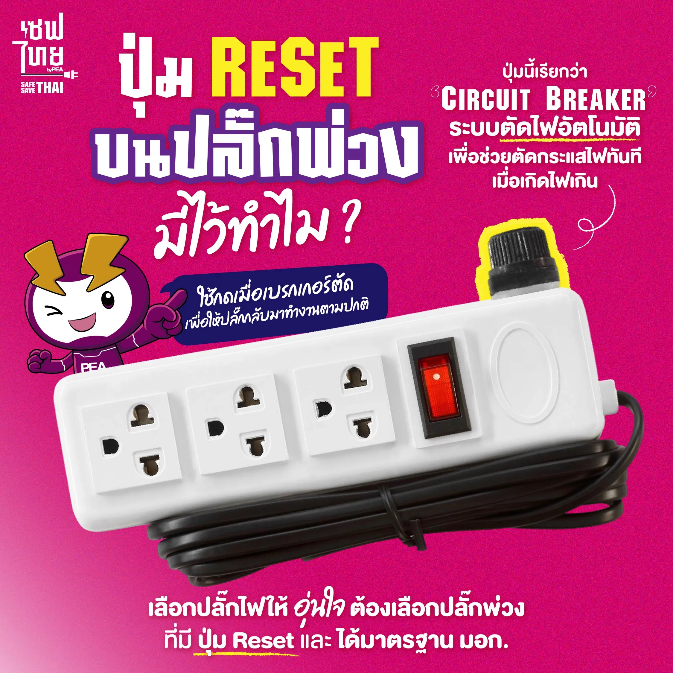 ✅ ควรเลือกปลั๊กพ่วงที่ได้มาตรฐานมอก. สังเกตปลั๊กพ่วงที่มีระบบตัดไฟอัตโนมัติ