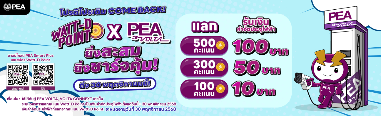 โปรดีโปรเดิมของชาว EV COME BACK! 🚙🎉 Watt-D Point X PEA VOLTA 💜🔌ยิ่งสะสม ยิ่งชาร์จคุ้ม!